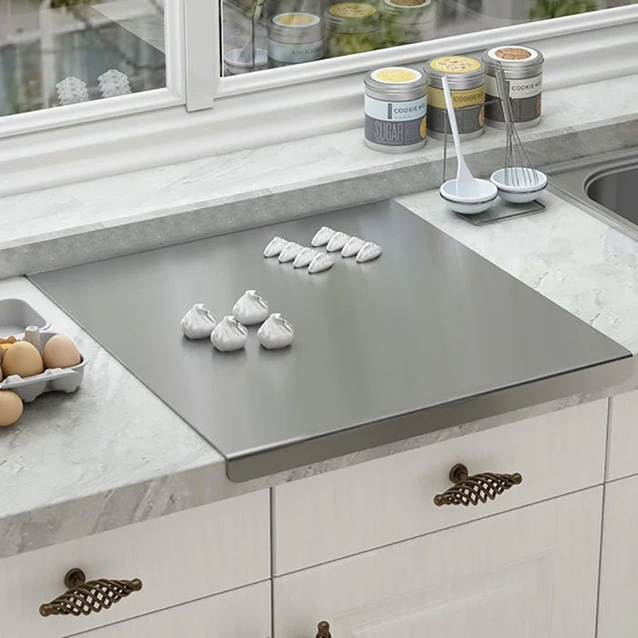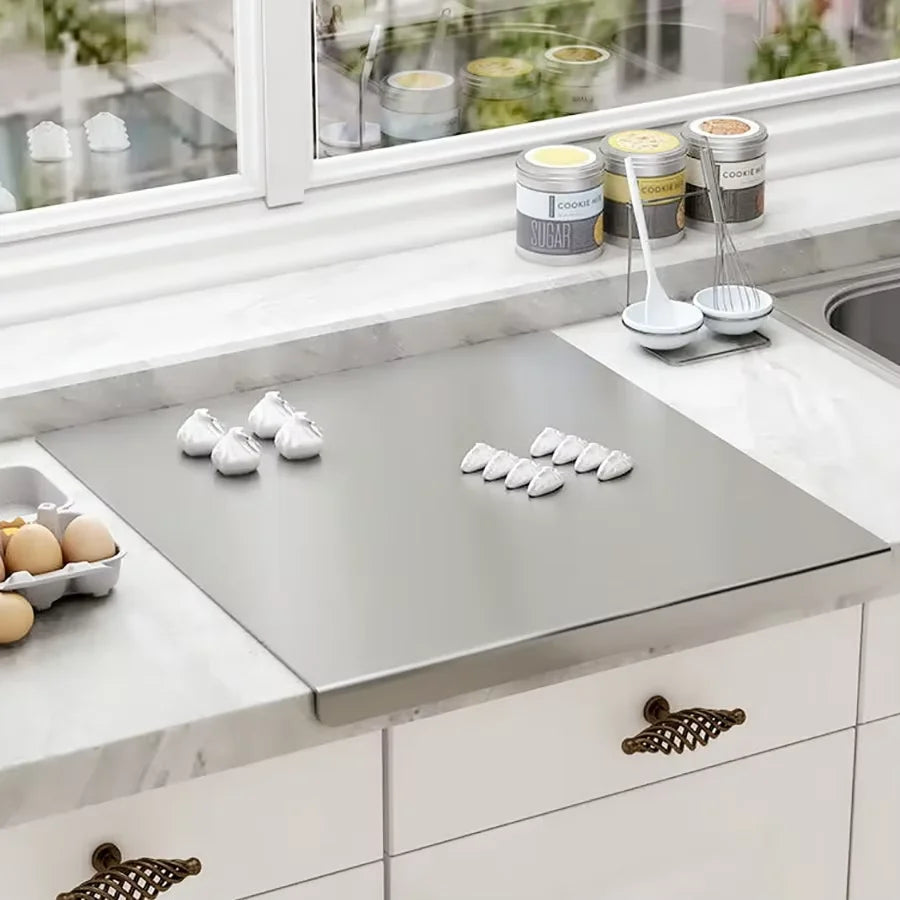 Cette planche à découper en acier inoxydable est conçue pour faciliter la préparation de vos repas.